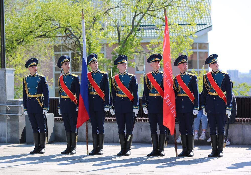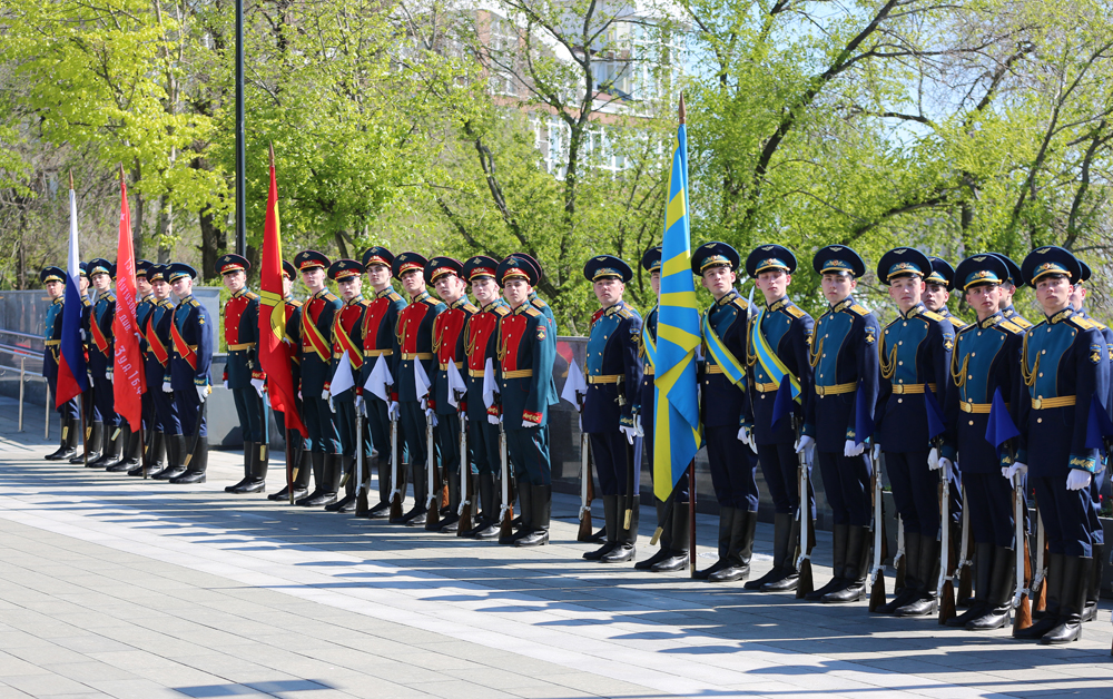 На плацу в Почетном карауле традиционно стояли курсанты Военно-воздушной академии имени Н.Е. Жуковского и Ю.А. Гагарина.