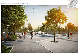 Парк «Южный» расположен по улице Новосибирской. Горожане очень ждут это пространство, которое и сейчас является местом притяжения горожан. Здесь предлагается создать большую спортивную зону с площадками для мини-футбола, скейтпарком и велосипедной трассой. Детская зона будет включать несколько игровых площадок для разных возрастов с теневыми навесами и даже скалодром. Также планируется организация фудкорта, амфитеатра и площадки для выгула собак.