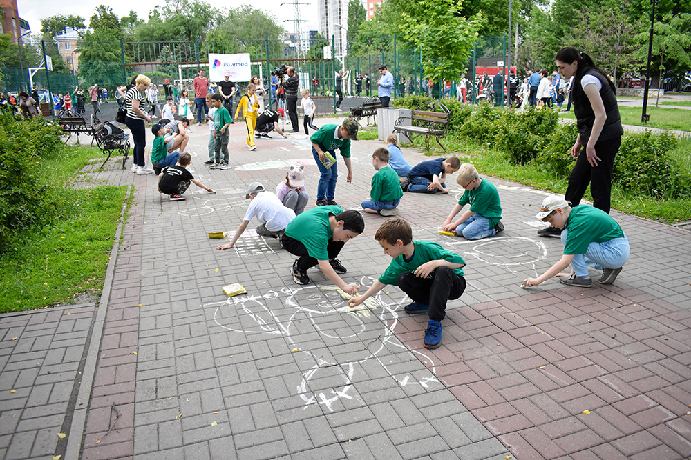 Ровно в 11.30 на территории сквера открылись многочисленные детские спортивные и творческие локации.