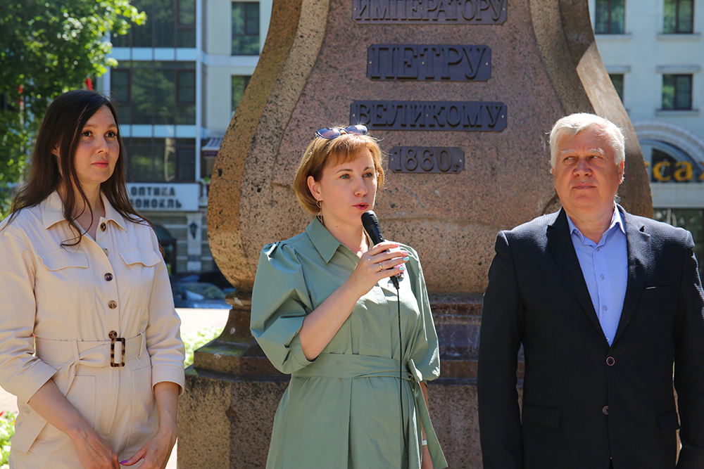 В рамках празднования 350-летия со дня рождения Петра I состоялось торжественное вручение почетных памятных медалей, возложение цветов и награждение победителей конкурса от туристско-информационного центра (ТИЦ) в Петровском сквере.Приняли участие в мероприятии представители городской администрации, заместитель председателя городской Думы Олег Черкасов, представители общественных, военно-патриотических и культурно-досуговых организаций, а также руководитель ТИЦ Екатерина Шрамко.
