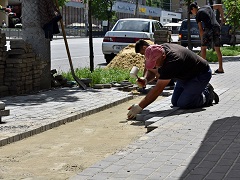 В настоящее время рабочие частично меняют плитку на участке улицы Плехановская: от Кольцовской до Никитинской. При этом у заказчика нет претензий к качеству укладки брусчатки.