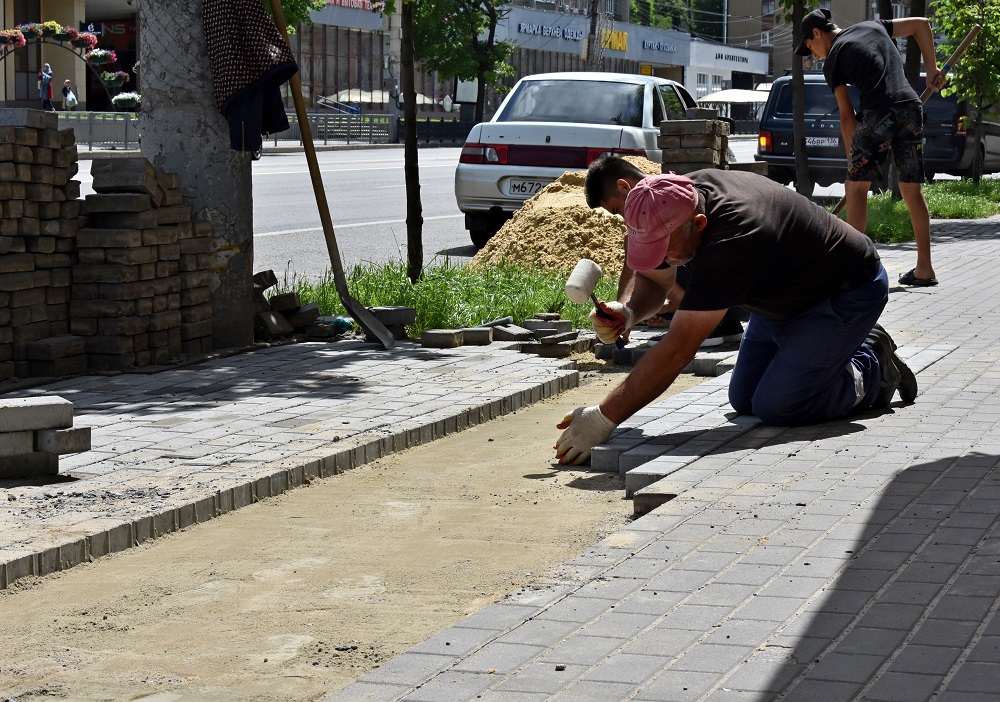 В настоящее время рабочие частично меняют плитку на участке улицы Плехановская: от Кольцовской до Никитинской. При этом у заказчика нет претензий к качеству укладки брусчатки.