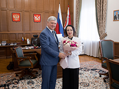 «Наградить медалью «За труды во благо земли Воронежской» заместителя главы администрации - полномочного представителя главы городского округа в городской Думе Плиеву Марину Васильевну – за многолетний плодотворный труд, высокий и профессионализм и большой личный вклад в социально-экономическое развитие городского округа город Воронеж», - сказано в Указе губернатора Воронежской области, подписанном накануне 55-летия вице-мэра.В день юбилея мэр Воронежа Вадим Кстенин поздравил Марину Васильевну: