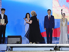 Общегородской выпускной — это еще и минута славы для наиболее талантливых выпускников. Сегодня шестеро ребят получили из рук Надежды Петровны благодарности и памятные подарки, это: