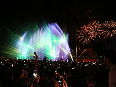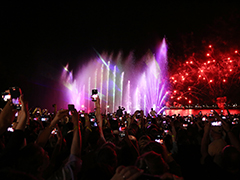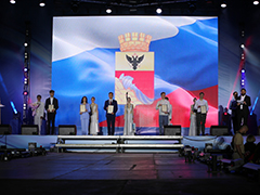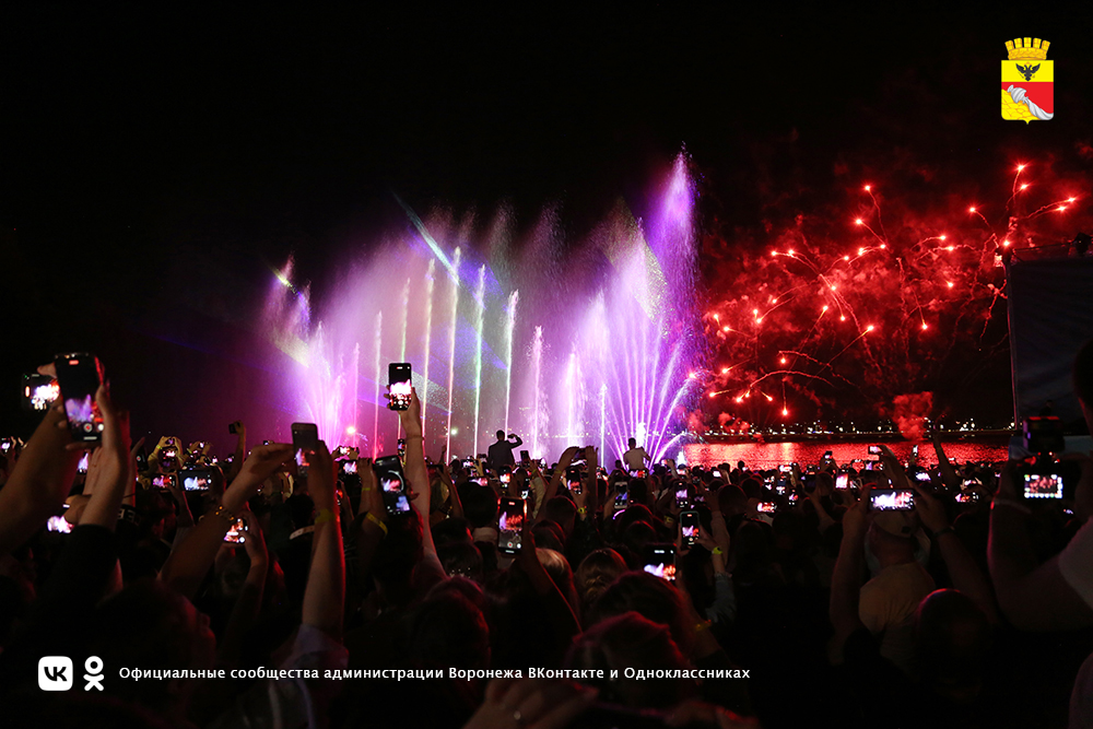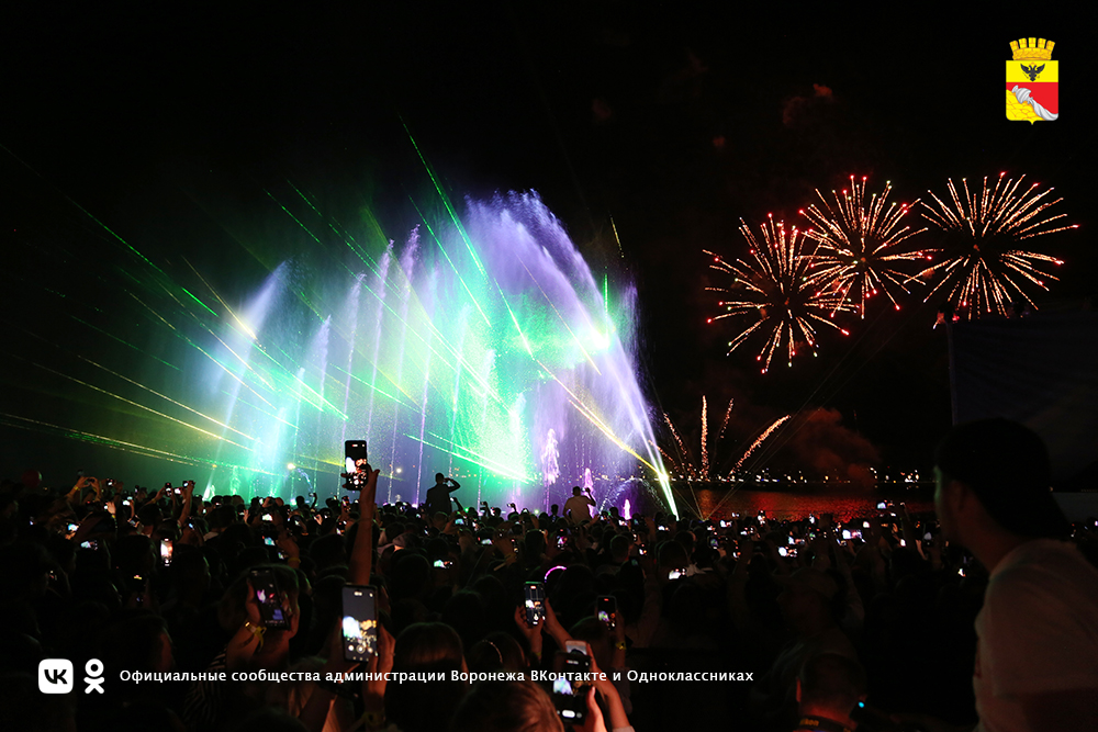 Звучат последние аккорды финальных творческих номеров и завершение торжественной части — водно-лазерное шоу, сопровождаемое масштабным салютом, конфетти и пиротехническими элементами на главной сцене.