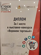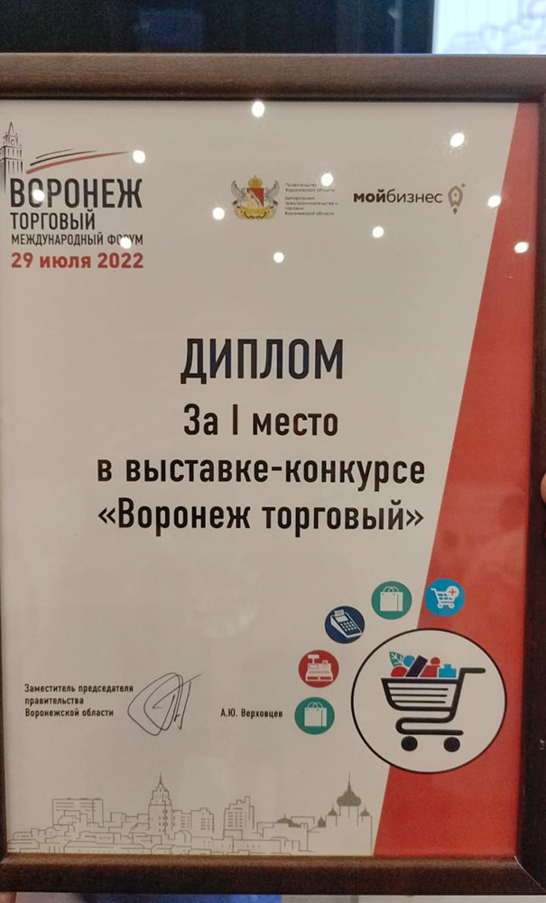 По итогам смотра воронежская экспозиция, созданная силами сотрудников управления развития предпринимательства потребительского рынка и инновационной политики совместно с предпринимателями, заняла первое место и была отмечена дипломом правительства региона.