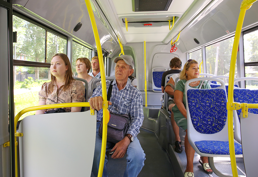 Он также поделился особенностями работы на остановках. Так, чтобы минимизировать количество горячего воздуха, попадающего в салон с улицы, завод-изготовитель предусмотрел задержку при открытии – после остановки двери открываются только через две секунды: как правило, за это время пассажиры успевают подготовиться к посадке, либо высадке. По техническим параметрам, говорит Анатолий, подвижной состав уже знаком и сложностей с ним не возникает. В части эксплуатации новая техника похожа на полученную ранее в рамках нацпроекта «Безопасные качественные дороги». Пассажиры могут отследить новые автобусы в специальном приложении – там они отмечены особым символом – снежинкой, также их выдает внешний вид – они полностью белые. На стекла внутри техники нанесены наклейки, напоминающие о работе кондиционеров.