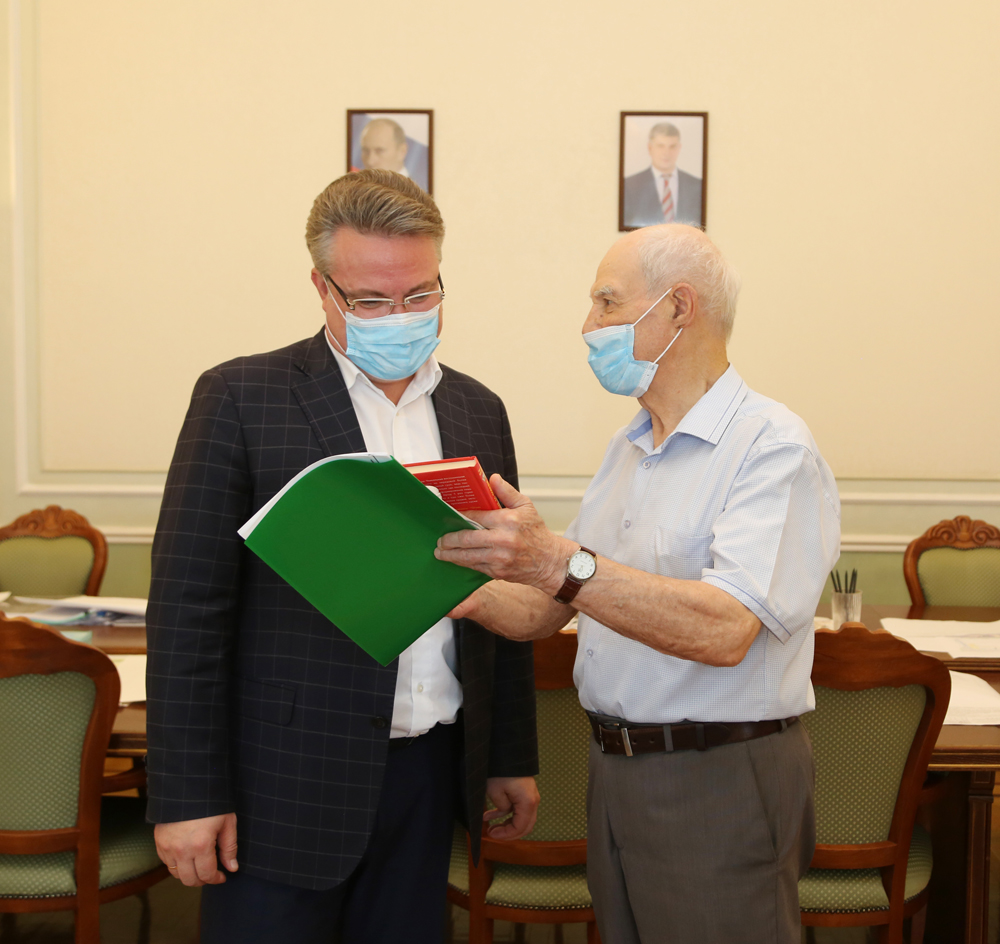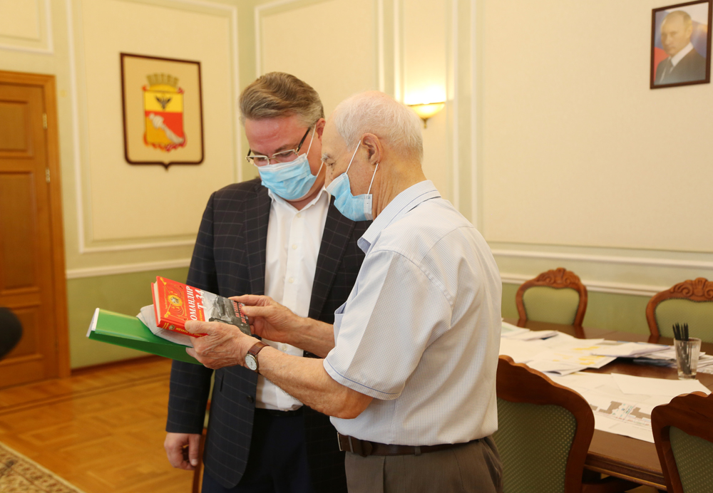 Николай Борисов поблагодарил мэра за поддержку предложенных инициатив и вручил ему авторскую книгу «Командир Т-34. На танке до Победы» с личным автографом.