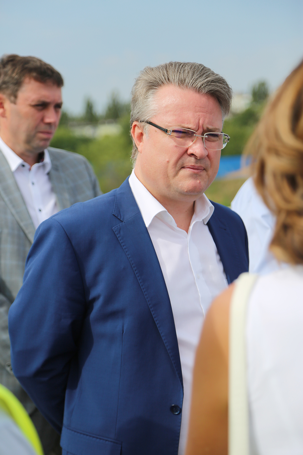 Сегодня мэр проинспектировал ход выполнения первого этапа реконструкции Остужевской развязки, а также заслушал доклады о готовности начала работ в рамках второго этапа строительства.На выездном совещании присутствовали первый заместитель главы администрации по городскому хозяйству Сергей Петрин, директор МКУ «Городская дирекция дорожного хозяйства и благоустройства» Оксана Евдакова, генподрядчик первого этапа реконструкции, представитель АО «Производственное объединение «Возрождение» Иван Кондрашин, а также генподрядчик второго этапа реконструкции, с которым накануне был заключен контракт, директор ООО «СМУ-90» Александр Сотников.