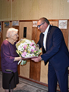 Сергей Ситников вручил юбиляру букет цветов от имени главы города Воронежа Вадима Кстенина и подарки от управы района.