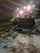 На территории Левобережного района продолжаются работы по благоустройству и текущему содержанию территории.Большую роль в этом играет МКП «Комбинат благоустройства Левобережного района», сотрудники которого работают не только днем, но ночью.