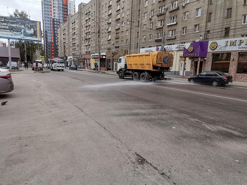 Техника сгоняла воду, подметала и каждые полчаса промывала аварийный участок. Комбинатом также завозился песок и вывозился грунт.МТЗ-82 с щетками выметали выезды и въезды, дворовые территории на участке от улицы Хользунова до Памятника Славы и саму улицу Хользунова. Позднее МТЗ приступили к помывке прилотковой зоны, выездов-въездов и дворовых территорий сначала обычной водой, а затем раствором гипохлорита натрия.