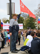 Впереди еще будут трудности, но все они окажутся по плечу, потому что «Вместе мы – сила!» – утверждали артисты со сцены, а в ответ получали одобрительные «Да!» от собравшихся. Особый настрой митингу задала песня «Катюша», исполненная хором митингующих под аккомпанемент «Ярилова зноя».