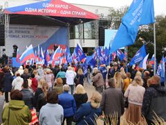– Остаются считанные минуты до подписания договора о вступлении Луганской и Донецкой народных республик, а также Херсонской и Запорожской областей в состав Российской Федерации. Точка еще не поставлена, нас еще ждут испытания, но мы добьемся полного освобождения территорий. Мы должны полностью разрушить фашизм, в котором оказалась Украина. Сворачивать с намеченного пути – не в нашем русском менталитете. С нами президент! С нами Россия! Мы победим! – сказал Александр Гончаров.