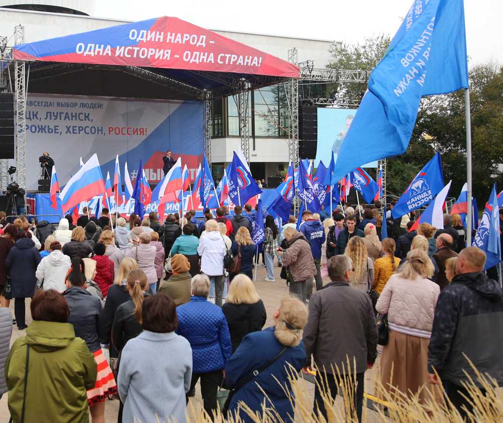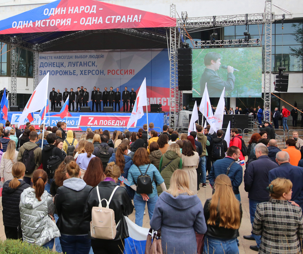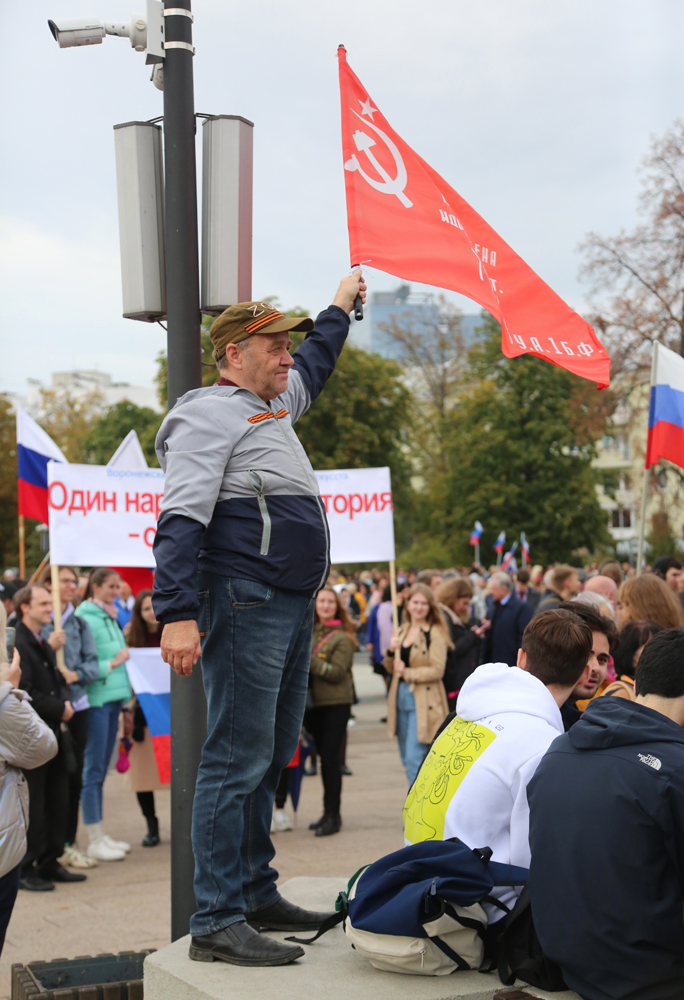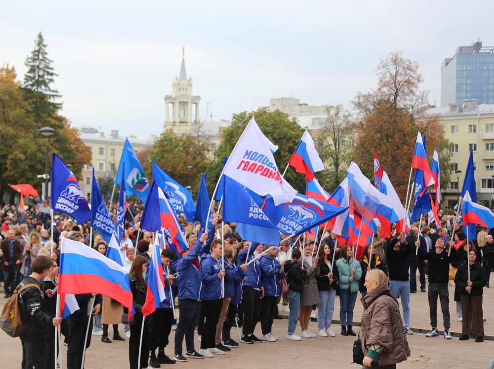«Своих не бросаем», «Вместе мы – сила». Такими лозунгами выражали свою радость жители Воронежа по случаю завершения референдумов о присоединении к России Луганской и Донецкой республик, а также Херсонской и Запорожской областей. В пятницу, 30 сентября, на Советской площади состоялась гражданско-патриотическая акция.