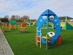 – Садик оснащен современным оборудованием – это логопедические зеркала, интерактивные доски, мультистудия и т.д., в нем будут работать музыкальный и спортивный залы, а также сенсорная комната. Особое внимание уделили безопасности – в самом здании и по его периметру установлены 62 камеры видеонаблюдения. Завершено и благоустройство прилегающей территории, там появились беседки, игровые и спортивные площадки, озеленение, – отметил Вадим Кстенин.