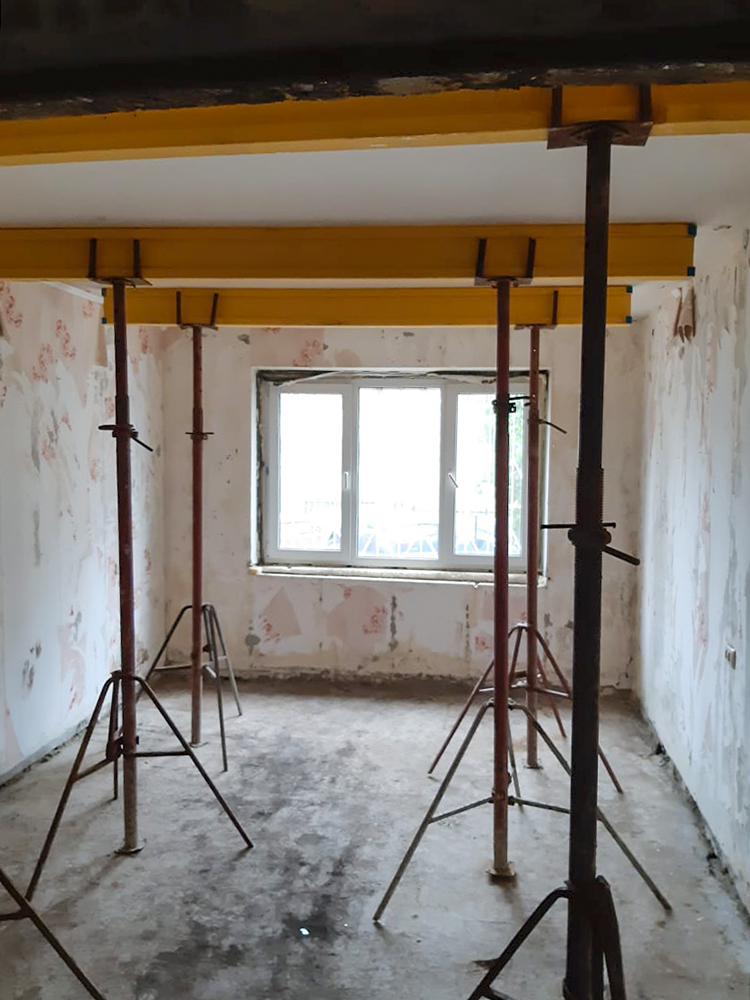 Подрядная организация приступила к работам после того, как были решены все жилищные вопросы людей. Сегодня уже закончена подготовка к бетонированию фундаментной плиты для усиления каркаса дома. В настоящий момент ведется монтаж конструкции внутри строения, благодаря которой рабочие смогут укрепить конструктив и самого здания. Тогда можно будет безопасно демонтировать вертикальную стену, пострадавшую при взрыве. Следующий этап – сбор металлоконструкции, которая основательно будет «защемлять» строение, защищая его от угрозы разрушения. После этого начнутся работы по бетонированию плит и стен.