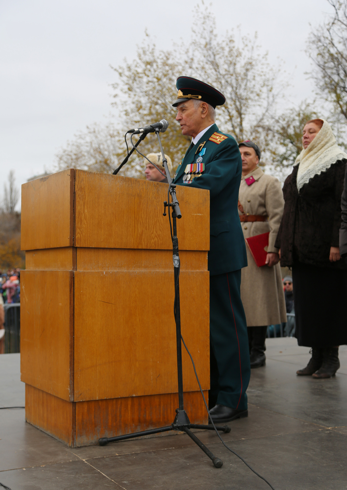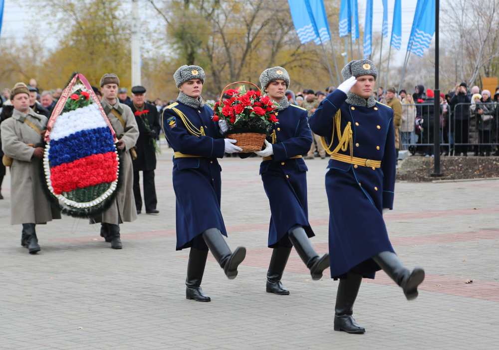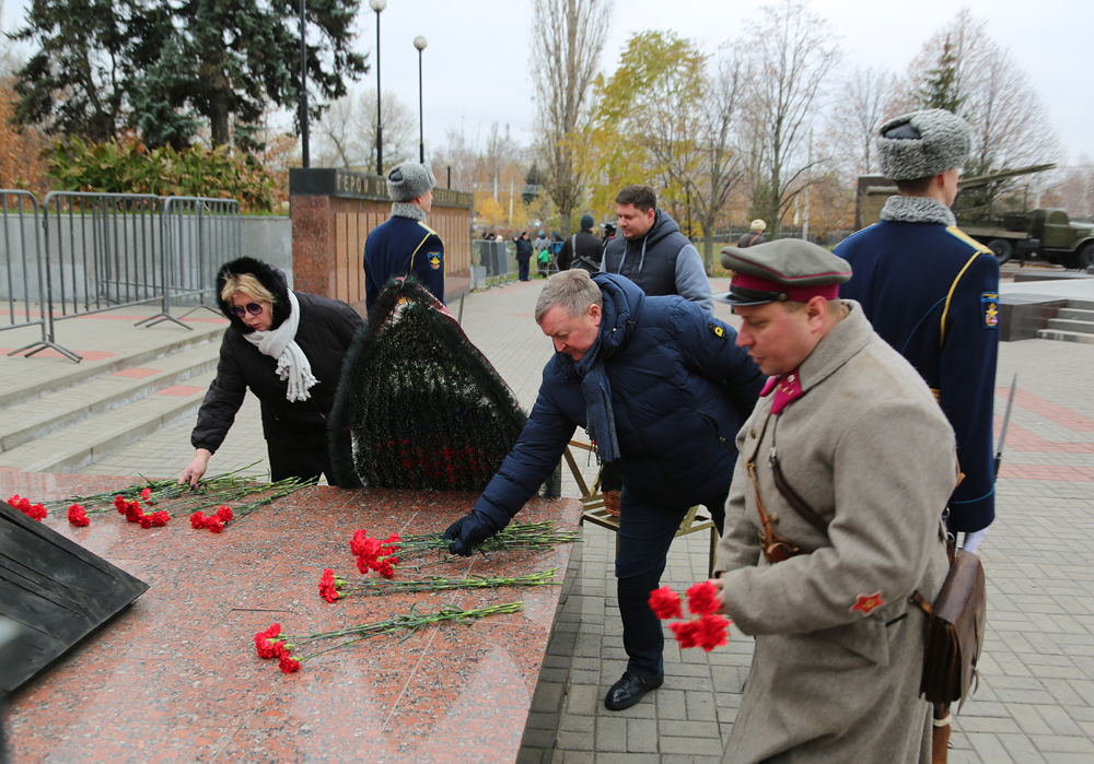 Перед началом реконструкторы, представители городской администрации — вице-мэры Сергей Глазьев и Надежда Савицкая, руководитель управления культуры Андрей Харитонов и другие участники почтили память погибших в боях за Воронеж. Они возложили венки и цветы к Вечному огню у братской могилы №6.