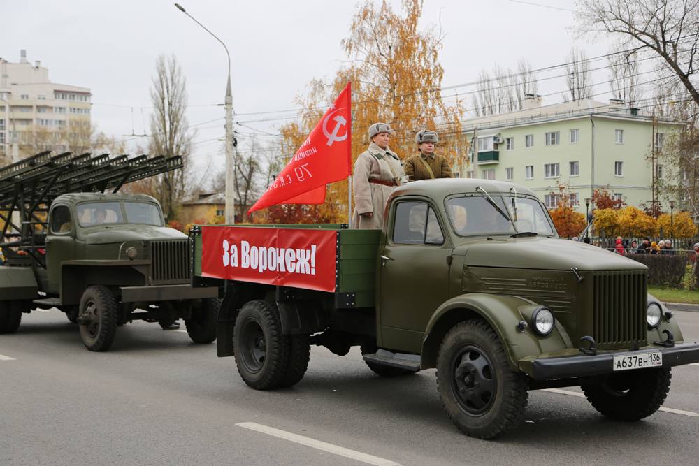 Главным организатором памятного мероприятия выступила общественная организация - военно- исторический клуб «За отвагу». Ее руководитель Евгений Соловьев рассказал, что более 60 реконструкторов не только из Воронежа, но и из соседних областей - Тамбовской, Белгородской, Курской и Липецкой - стали сегодня участниками торжественного шествия. В этот день жители города смогли увидеть и технику времен Великой Отечественной войны, в том числе и легендарную воронежскую «Катюшу». Боевые машины проехали по Ленинскому проспекту, а потом все желающие смогли сфотографироваться с ними.- Реконструкция парада 1941 года проходит в нашем городе уже в третий раз и мы надеемся, что это станет традицией и каждый год мы будем воссоздавать событиях тех лет, отметил Евгений Соловьев.Кроме того, перед зрителями парадным строем прошагали и представителей подрастающего поколения – кадеты, юнармейцы, курсанты военных ВУЗов, представители военно-патриотических клубов и объединений, отдав тем самым долг памяти героическому прошлому своего Отечества. Ведь тогда в 1941 году проведению парада предшествовал разгар наступления немецко-фашистских войск, и линия фронта находилась менее чем в 200 километрах от Воронежа. Так же, как и с Красной площади в Москве, бойцы Юго-Западного фронта, сражавшиеся за наш город, уходили прямо на передовую.