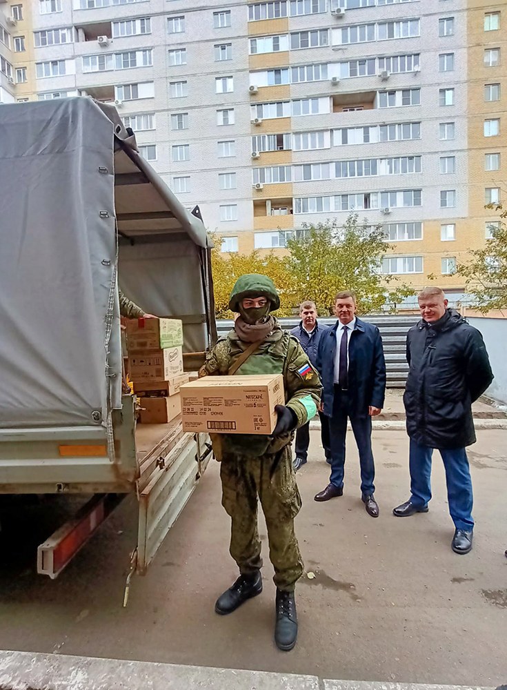 Руководитель департамента предпринимательства и торговли Воронежской области Сергей Корчевников и руководитель управы Коминтерновского района Виталий Поздняков доставили гуманитарную помощь в расположение одной из воинских частей. – Правительство региона по поручению губернатора Александра Гусева оказывает большую поддержку ребятам, проходящим сегодня воинскую службу в рамках выполнения специальных задач. Однако к нам поступают и личные инициативы неравнодушных представителей бизнеса, предлагающих свою поддержку. Мы всячески их приветствуем и благодарим людей, которые по «зову сердца» дополнительно собирают гуманитарную помощь, болеют душой за наших солдат, – поделился руководитель департамента предпринимательства и торговли Воронежской области Сергей Корчевников.