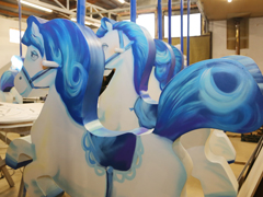 Одним из новшеств этого года станет появление на площади Ленина горки высотой более 5 метров. Этот вопрос детально обсуждался специалистами, основываясь на наблюдениях и опыте прошлых лет, было принято решение о создании дополнительных активностей для детей. Горка – самый масштабный элемент. Работать аттракцион будет в любую погоду, благодаря тому, что два ската шириной по полтора метра изготовлены из скользящего материала. Воронежцы смогут кататься не только в светлое время суток, но и вечером, так как рядом будет установлено более 30 светильников-шаров. – Проводится огромная инженерная работа – после получения концепции, дорабатываем все проекты конструкций, производим тщательные расчеты параметров и характеристик, а также стараемся вложить душу в каждую композицию. Сейчас более 100 человек заняты подготовкой новогодних конструкций. Например, фигурки лошадок, которые будут располагаться на детской карусели, выпилены на станке по однотипному эскизу, но расписаны вручную воронежскими мастерами-художниками. Цель, которую мы ставим перед собой – реализовать не только высокотехнологический проект, но и вложить в него огромный интеллектуальный ресурс воронежских специалистов и, конечно же, доставить положительные эмоции детям и взрослым, которые придут на площадь, – отметил представитель фирмы-подрядчика Борис Чубур.