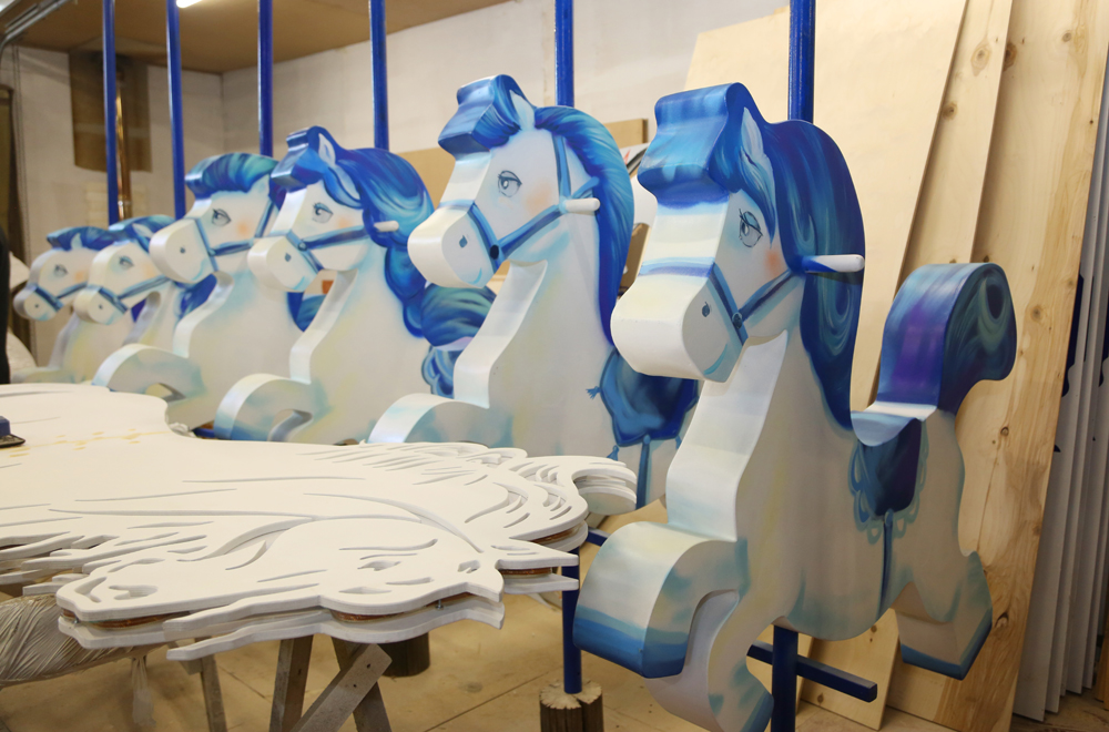 Одним из новшеств этого года станет появление на площади Ленина горки высотой более 5 метров. Этот вопрос детально обсуждался специалистами, основываясь на наблюдениях и опыте прошлых лет, было принято решение о создании дополнительных активностей для детей. Горка – самый масштабный элемент. Работать аттракцион будет в любую погоду, благодаря тому, что два ската шириной по полтора метра изготовлены из скользящего материала. Воронежцы смогут кататься не только в светлое время суток, но и вечером, так как рядом будет установлено более 30 светильников-шаров. – Проводится огромная инженерная работа – после получения концепции, дорабатываем все проекты конструкций, производим тщательные расчеты параметров и характеристик, а также стараемся вложить душу в каждую композицию. Сейчас более 100 человек заняты подготовкой новогодних конструкций. Например, фигурки лошадок, которые будут располагаться на детской карусели, выпилены на станке по однотипному эскизу, но расписаны вручную воронежскими мастерами-художниками. Цель, которую мы ставим перед собой – реализовать не только высокотехнологический проект, но и вложить в него огромный интеллектуальный ресурс воронежских специалистов и, конечно же, доставить положительные эмоции детям и взрослым, которые придут на площадь, – отметил представитель фирмы-подрядчика Борис Чубур.