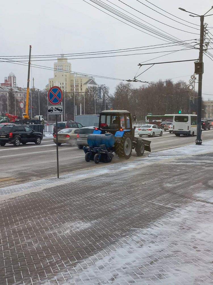 В дневную смену на улицах города работали 196 единиц спецтехники. Основные виды работ: обработка магистралей и тротуаров вдоль них песко-соляной смесью, а также сгребание снега и подметание после того, как пескосмесь срабатывает. Поскольку осадки продолжаются, циклы «обработка-подметание» повторялись уже несколько раз – для этого днём было задействовано почти 120 комбинированных дорожных машин, тракторов со щётками, а также малой коммунальной техники для работы на тротуарах. Более 330 работников ручной уборки очищали подходы к пешеходным переходам, остановочные площадки и т.д.