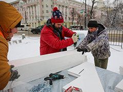 - Это сборные конструкции, которые состоят из множества элементов. Каждая при доставке занимала огромный 20 тонный грузовик. Это уникальный сложный архитектурный образ, зарисовка, которую мы сделали на нашем производстве. И мне, как члену Союза архитекторов приятно, что мы можем показать такой арт-объект жителям Воронежа и тем самым напомнить о петровской эпохе. Их установка на площади Ленина практически завершена - осталось декорирование световыми элементами, - рассказал представитель фирмы-подрядчика Борис Чубур.Уже на следующей неделе в Воронеж приедут специалисты из Москвы для проведения сертификации аттракционов, поэтому в выходные продолжится сборка новогоднего дерева, монтаж горки и шатра, будут устанавливаться качели-лодочки.