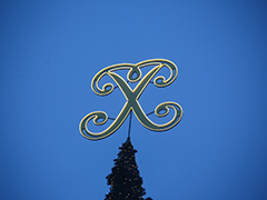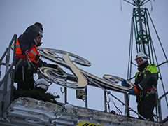 Вечером 9 декабря специалисты фирмы-подрядчика, которая занимается украшением площади Ленина к новогодним и рождественским праздникам, протестировали работу вензеля Петра I.Именно он в этом году разместится на верхушке ели вместо традиционной звезды. Высота вензеля больше 2 метров. Внешний вид разработан специалистами фирмы-подрядчика совместно с компанией, которая занималась производством новогоднего дерева. Он полностью вырезан на станках в воронежских цехах.