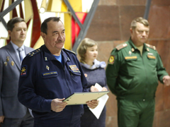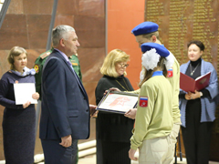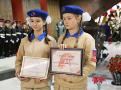 Командиры отрядов получили соответствующие свидетельства из рук Василия Пенькова и Рафката Валиулина. - Хотелось бы, чтобы вы были достойны имен этих замечательных людей, которые ценой своей жизни защищали нашу родину, обеспечили наше с вами будущее и настоящее. Вам есть на кого равняться в этой жизни, пожалуйста, будьте достойны своих героев, - напутствовал ребят Василий Степанович.В свою очередь, Наталья Кармазина поблагодарила ребят за проделанную работу по сохранению памяти о войне и о героях, ковавших победу, и вручила сертификаты на получение комплектов зимней юнармейской формы.