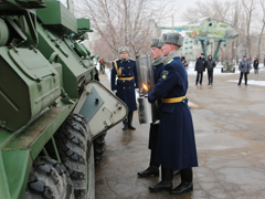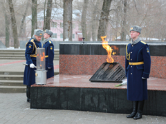 После приведения в порядок воинского захоронения, «пламя памяти» там загорелось с новой силой. С утра 16 декабря сюда перевезли частицу Вечного Огня с братской могилы №6, которая располагается у Музея-диорамы. Курсанты военно-воздушной академии имени профессора Н.Е. Жуковского и Ю.А. Гагарина бережно поместили его в колбу и доставили на бронетранспортере.