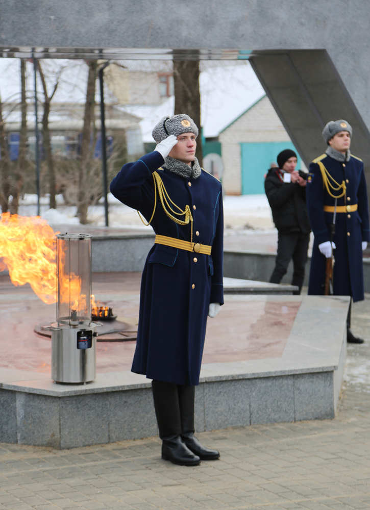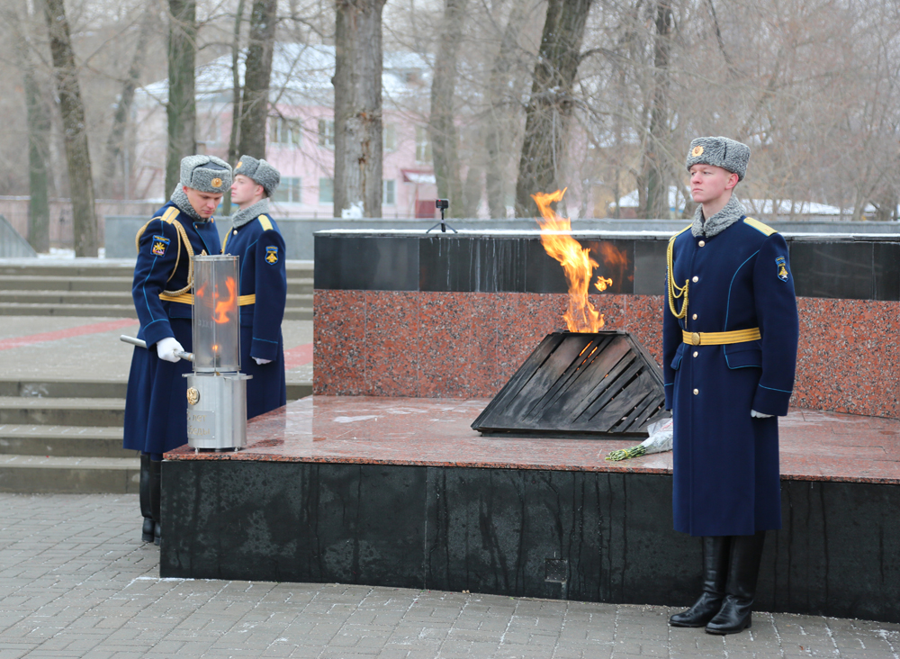 После приведения в порядок воинского захоронения, «пламя памяти» там загорелось с новой силой. С утра 16 декабря сюда перевезли частицу Вечного Огня с братской могилы №6, которая располагается у Музея-диорамы. Курсанты военно-воздушной академии имени профессора Н.Е. Жуковского и Ю.А. Гагарина бережно поместили его в колбу и доставили на бронетранспортере.