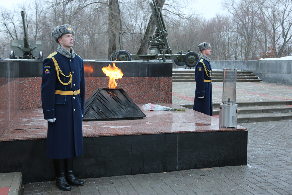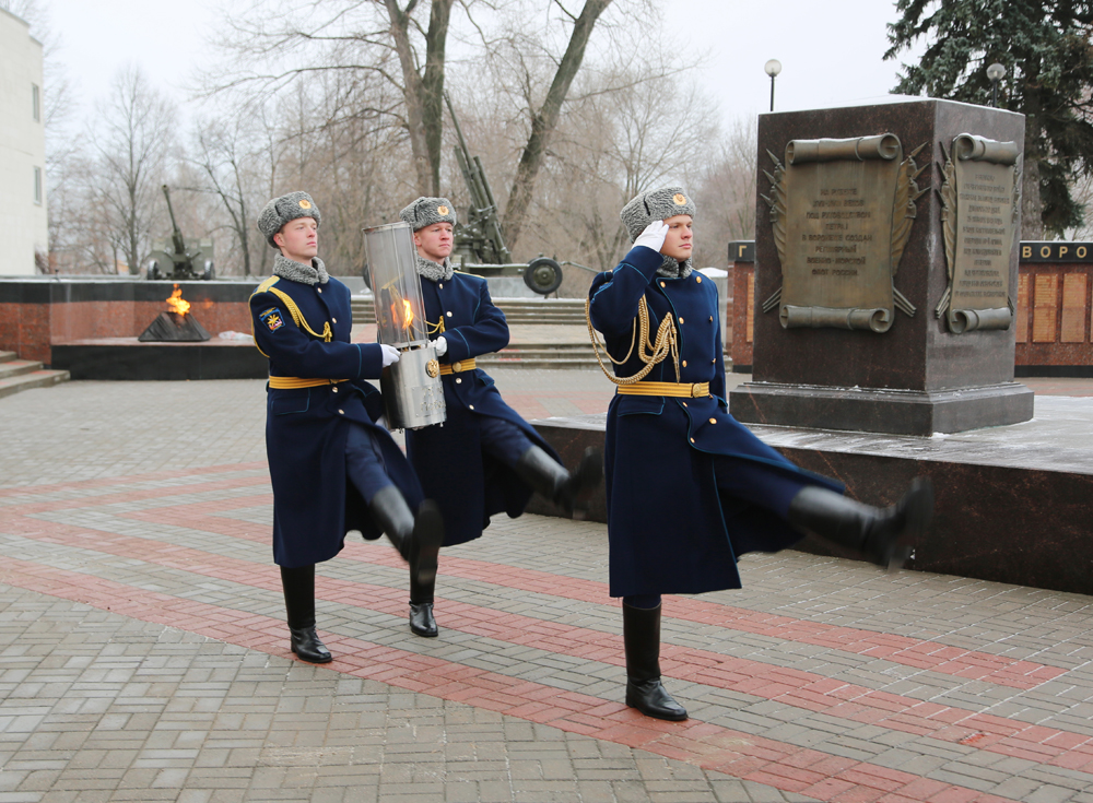 После зажжения Вечного Огня присутствующие почтили память погибших минутой молчания и возложили венки и цветы к памятнику, а рота Почетного караула курсантов академии прошла торжественным маршем.– Патриотическое воспитание подрастающего поколения сегодня является одним из приоритетных направлений деятельности учреждений социальной сферы города. Мы активно развиваем систему детско-юношеских движений, в том числе и «Юнармии», проводим широкую работу воспитательную работу в общеобразовательных школах, сотрудничаем с военными вузами, ветеранскими объединениями, приводим в порядок воинские мемориалы и захоронения, возводим новые объекты, например музей ВДВ, для достижения общей цели – сохранения памяти об историческом прошлом нашей страны, о подвигах, совершенных в годы Великой Отечественной войны, и цене победы над захватчиками. Это особенно важно накануне 80-летия освобождения Воронежа от немецко-фашистских захватчиков, которое мы будем отмечать в течение всего следующего года, и проводить огромное количество мероприятий в связи с этим, - отметила вице-мэр по социальной политике Надежда Савицкая.