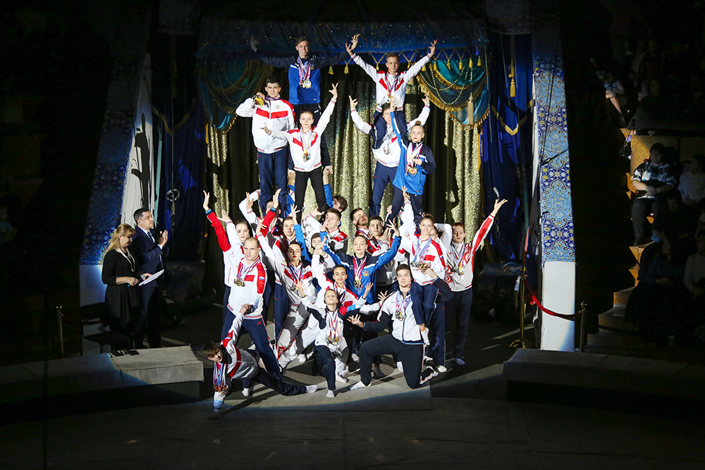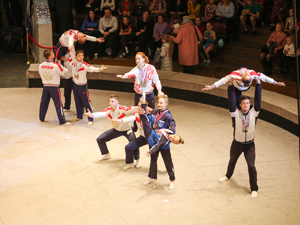 Вчера в групповых танцевальных номерах с элементами акробатики свое мастерство зрителям представили 700 акробатов и батутистов разных возрастов под предводительством 40 тренеров.
