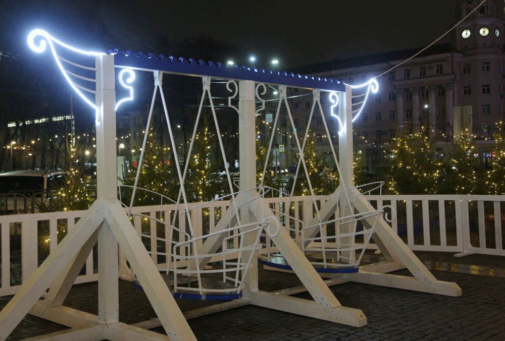 На площади также появился почти настоящий лес из украшенных гирляндами елочек, среди которых можно прогуляться и отдохнуть, а также сделать красивые фотографии. Ближе к Новому году будет установлен и большой светодиодный экран, на котором начнут транслироваться новогодние кино- и мультфильмы.Одной из самых востребованных локаций, как ожидается, станет большая горка. Специалистами в условиях совсем не зимней погоды пришлось применять дополнительные решения, чтобы она могла радовать детей даже в плюсовую температуру и при отсутствии осадков. Для этого на ней смонтировано специальное всепогодное покрытие – сноупласт, которое позволяет использовать горку и без снега. В связи с этим – предупреждают организаторы – кататься с нее можно только на тюбингах.