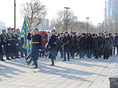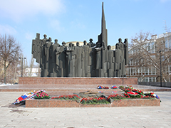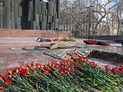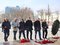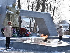 Сегодня – в преддверии Дня защитника Отечества – на площади Победы состоялась церемония возложения венков и цветов к могиле Неизвестного Солдата.Мемориальный комплекс, расположенный здесь, является символом народной скорби по всем героям, отдавшим жизни за свободу и независимость своей страны. Он увековечил подвиг солдат и самоотверженность мирных жителей, проявленные в годы Великой Отечественной войны.