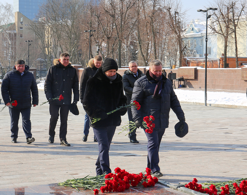 Сегодня – в преддверии Дня защитника Отечества – на площади Победы состоялась церемония возложения венков и цветов к могиле Неизвестного Солдата.Мемориальный комплекс, расположенный здесь, является символом народной скорби по всем героям, отдавшим жизни за свободу и независимость своей страны. Он увековечил подвиг солдат и самоотверженность мирных жителей, проявленные в годы Великой Отечественной войны.