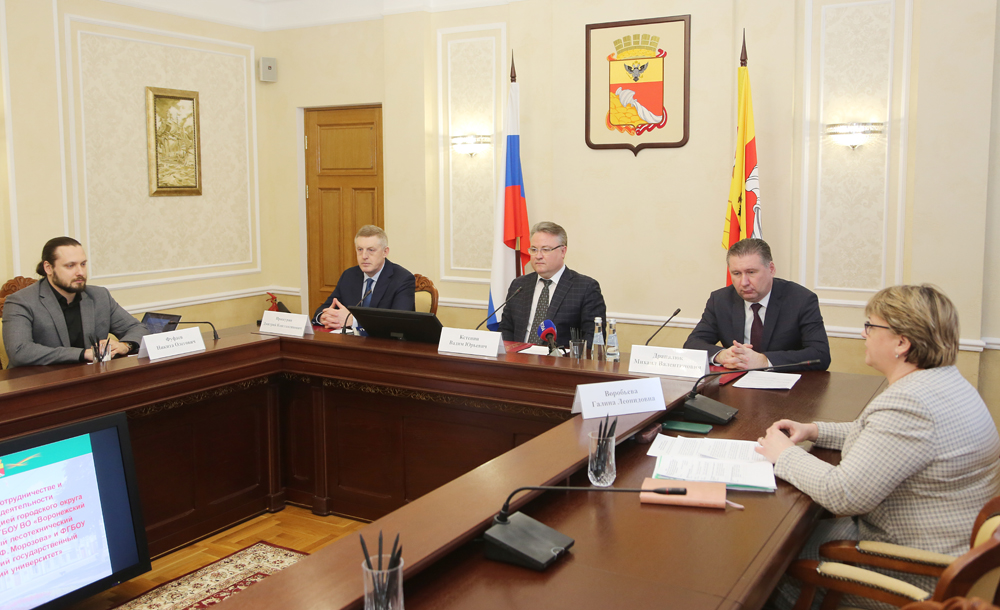 Сегодня было подписано соглашение о сотрудничестве и совместной деятельности между городской администрацией и профильными вузами. В нём приняли участие глава города Вадим Кстенин, ректор Воронежского государственного технического университета Дмитрий Проскурин и ректор Воронежского государственного лесотехнического университета Михаил Драпалюк.