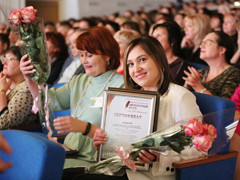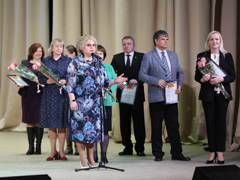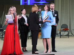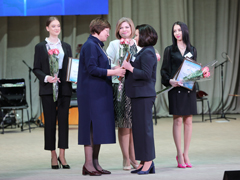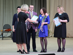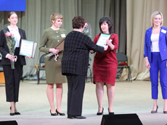 Начальник отдела общего и дополнительного образования Ирина Лырьщикова наградила победителей номинации «Классный руководитель»: Ольгу Жерносек (III место, СОШ № 99), Марину Мамёк (III место, лицей «МОК № 2»), Елену Голубых (II место, СОШ № 102), Эллину Подлесную (I место, СОШ № 48).