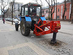– Кроме серьезной техники, купили и некоторое новое оборудование, в том числе для выкорчевывания пней. Раньше такого у комбинатов не было, а теперь его можно устанавливать вместо пескоразбрасывателей или щеток. Очень нужное приобретение: там, где ранее были удалены опасные деревья, появилась возможность аккуратно, не нарушая сложившееся благоустройство, удалить пни и в дальнейшем высадить новые крупномерные саженцы, – рассказал мэр.