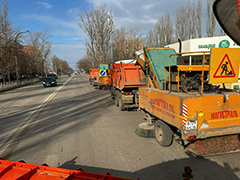 На магистральных улицах работают коммунальные дорожные машины и трактора со щетками, предназначенные для круглогодичного механизированного ухода, весной, летом и осенью с увлажнением дорожного полотна. Благодаря такой оперативной очистке дорог удастся предотвратить последствия весенних пылевых бурь.Прицепная подметально-уборочная машина «Магистраль» эффективно убирает улицы, благодаря системе увлажнения поверхности, не поднимая пыль.