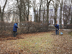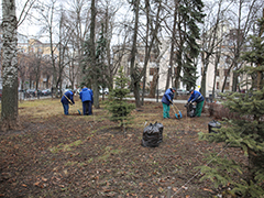 Также ведется санитарная уборка общественных пространств и обрезка зеленых насаждений.