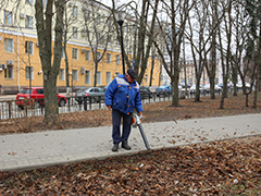 На тротуарной части районный комбинат благоустройства использует малогабаритную подметальную технику.