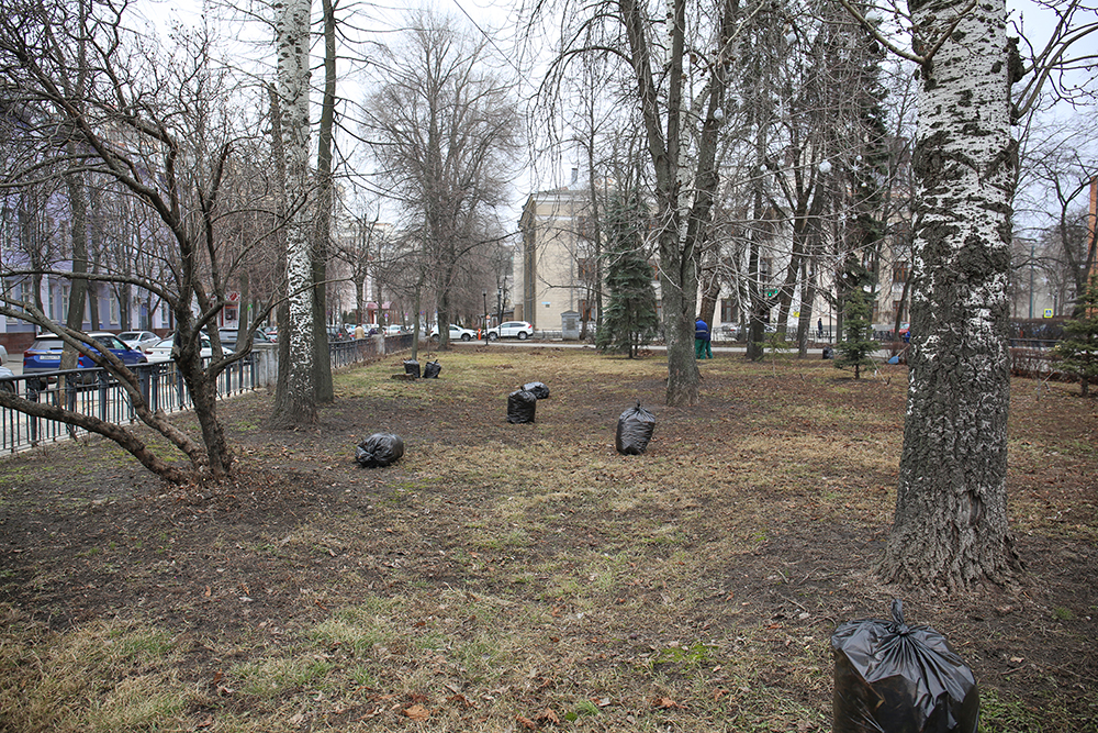 Сотрудники «ЭкоЦентра» и «Зеленхоза» продолжают убирать территории парков и скверов после зимы.