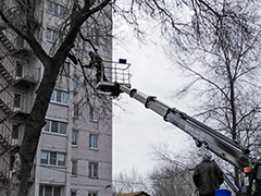В Ленинском районе продолжаются плановые работы по благоустройству и приведению в порядок зеленых насаждений – санитарная обрезка, удаление старовозрастных и аварийных деревьев, создающих угрозу пешеходам и транспортным средствам.С 2023 года такие работы стало возможным проводить силами комбината благоустройства – теперь, благодаря обновлению парка коммунальной техники, в распоряжении комбината имеется собственный автогидроподъемник.