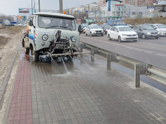 Специалисты комбината приступили и к сезонным работам по помывке дорожных ограждений от грязе-солевых отложений после зимы. Работы по очистке выполняются комбинированными машинами с навесным щеточным оборудованием, которые обеспечивают быструю и качественную очистку, а также вручную сотрудниками комбината с помощью мини-техники.