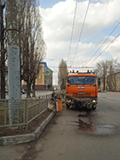 Комбинат благоустройства Коминтерновского района после зимнего периода систематически очищает улично – дорожную сеть от пыли, грязи и мусора. Стоит отметить, что уборка ведется с соблюдением всех санитарных норм, когда не допускается вымывание грязи и мусора на газоны, тротуары, а также остановки общественного транспорта.