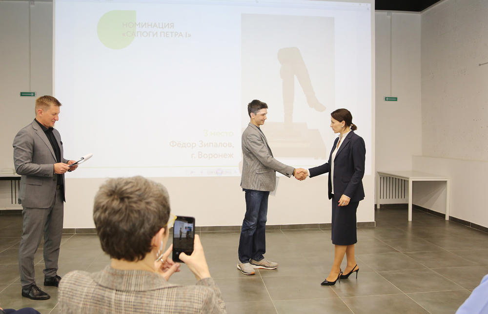 Самым юным участником конкурса стал шестнадцатилетний воронежец Федор Зипалов. Его работа заняла 3 место в номинации «Сапоги Петра I». Федор в прошлом году окончил 9 класс и собирается поступать в Московское художественное академическое училище. Он рассказал, что это его первый опыт участия в таких мероприятиях, а в созданном проекте он показывал сапоги сидящего за столом императора Петра I. Победителем же в этой номинации был признан скульптор из Москвы Владислав Мишов. Его скульптурная композиция появится напротив дома №41 на проспекте Революции. Стоит отметить, что еще одна работа этого автора стала лучшей, но уже в номинации «Подпись Петра I», где также было представлено несколько интересных работ. Выбранная композиция появится на Есенинской аллее.