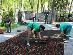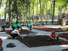 Например, сегодня, около 6 тысяч бегоний украсили парк «Орленок». Добавим, что на некоторых мемориальных объектах, будет проведена двойная высадка однолетних цветов. Например, у памятника Черняховскому к празднованию Дня Победы высаживают устойчивую к заморозкам виолу. Летом ее сменят другие однолетники.