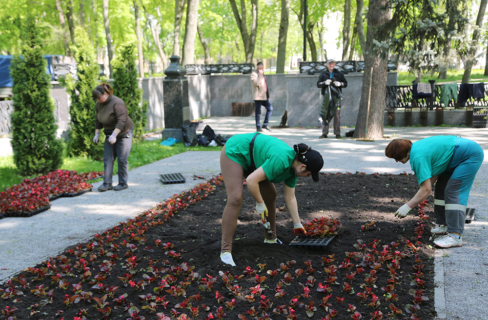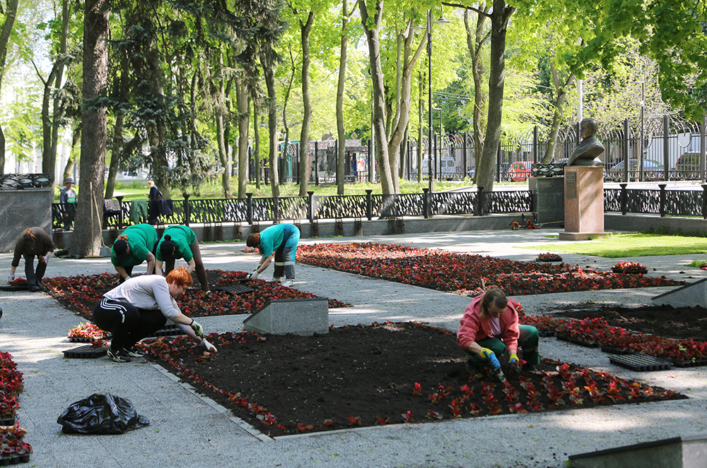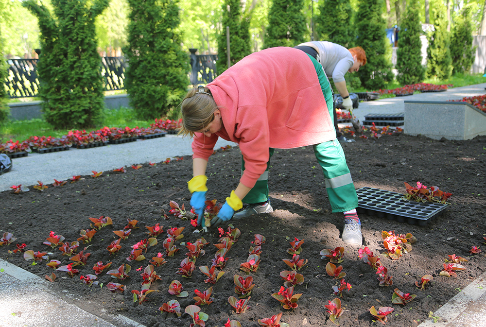 Например, сегодня, около 6 тысяч бегоний украсили парк «Орленок». Добавим, что на некоторых мемориальных объектах, будет проведена двойная высадка однолетних цветов. Например, у памятника Черняховскому к празднованию Дня Победы высаживают устойчивую к заморозкам виолу. Летом ее сменят другие однолетники.